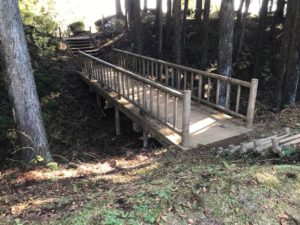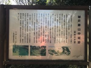 到着。スタンプ設置の売店は開いている気配がないため、駐車場のトイレ脇の順路看板を頼りに城跡の見学を開始。