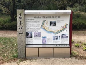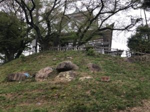 小牧市歴史館を目指し、山を登っていきます。模擬とも言えないような天守(小牧市歴史館)の中に入り、展望室から外の景色を見渡す。歴史館の裏手に石垣の石の裏面がわかる展示がされており、そちらの方が興味深かったです。