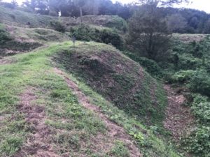本日の1城目は八王子城です。河口湖ICから高速を使い、八王子城へ・・・八王子城跡管理棟の手前の駐車場に車を止めます。10数台しか止めれませんが・・・管理棟に行くと出入り口付近にスタンプが置いてあります。スタンプの状態はいいです。親切なボランティアの方々が城跡を案内してくれます。案内してもらうことをおすすめします。御主殿跡までなら往復40分程度、本丸跡までなら2時間コースらしいです。今回は時間の都合で御主殿跡まで案内してもらいました。立派な曳橋が架けられており、当時の曳橋の目的を想像することはできません。