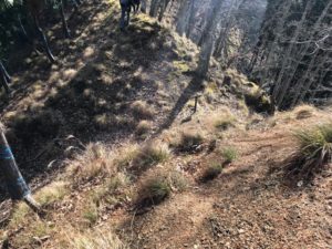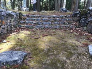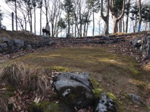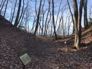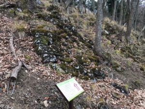8時ごろ自宅を出発、スタンプ入手後車でさまよう。とほほ。結局車でガード下はくぐれない事がわかりました。町屋橋付近の駐車場に車を停め、彦根44ガードから登城開始!!午前10時っ。鎌刃城まで3kmです。50分登山して北の大堀切に到着。ザ大堀切です。次に大櫓跡、北曲輪枡形虎口、どんどん進んで主郭、主郭の虎口が迎えてくれます。南曲輪を過ぎるとまたも大堀切!!ロープで降ります。それから連続堀切、青龍の滝。次に西曲輪。竪掘群が見たかったので相方とワンコを待たせて進軍しましたが、ここが一番キツイ。ロープ頼みの上り下りで手袋があった方がいいです。結局、竪掘群の辺りまで行きましたが、よくわかりませんでした。最後に大石垣(土留め用と思いました。)を見て下山。昼食抜きで所用時間3時間半でした。大満足&足がガクガクです!!