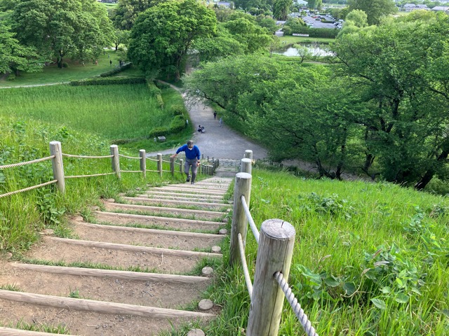 佐野ラーメンを堪能したあと、国宝 妻沼聖天山(めぬましょうでんざん)本殿へ向かいます。日光東照宮のような見事な彫刻を見ることができます。そしてオーラスはのぼうの城の舞台となった忍城の登城となります。行田市郷土博物館はかなりの人で、忍城御三階櫓、石垣、堀を見学後早々に退散しました。忍城は関東七名城のひとつで戦国時代終わりに石田三成から水攻めを受けた城で有名です。その水攻めで造られた堤(石田堤)を確認しなければ!この石田堤は14kmほどあったともいわれ、石田堤史跡公園で確認することができます。まだ時間があったので石田三成が水攻めの際、陣を張った丸墓山古墳へも行ってきました。かなり歩いた一日でしたが、350kmの道のりを頑張って帰ります。