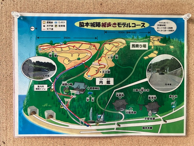 できれば、下の駐車場に車を止めて石垣→政宗公の像→スタンプの順の