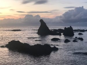 金沢城に続いて10年振りの七尾城に向かいます。お昼はサービスエリアのコンビニで簡単に済ませて、無料駐車場に到着。こんなに狭かったっけ?我が家の車で満車となりました。野面積みの石垣を見て、以前訪れた時を思い出しました。今回は、虎口の石垣に積まれた九尺石を見ることを目標としました。本丸へ続く道の脇の石垣は登り石垣ではないよね?日が落ちてくる前に、見附島、ゴジラ岩観光。そして温泉、晩ご飯の北陸海の幸の行程をこなしていきます。