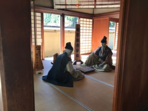 高速道路の渋滞に会わずになんとか一乗谷城に到着。復元町並の横の無料駐車場に車を