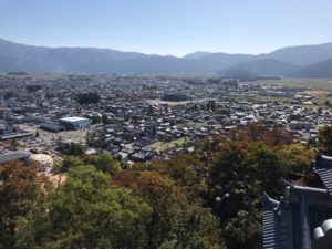 本日2城目は越前大野城。以前も1回か2回来たが、続100名城に登録されてからは初登城です。最も急な階段側の駐車場に止めたため、いい運動になりました。青空をバックとした天守はいい!!スタンプ押して、最上階からは市内が一望できる。金網が開口されて見やすく配慮されています。この後、恐竜博物館に立ち寄ってから丸岡城へ向かいます。