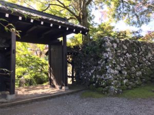 秋の北陸 城巡り初日、1城目は10年振りとなる一乗谷城です。午前6時半に自宅出発で9時半には一乗谷城に到着。いい天気です。わんこの入場可能を確認し、朝倉氏の館跡を見学。唐門、土塁、堀、庭園を見て、記憶を呼び起こす。やっぱり、バックが青空だと写真映えする!!