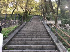 登城したどの城よりも急でした。ロープが備え付けてあるのもわかります。