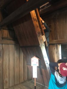恐竜博物館博物館を楽しんで、谷口屋のおあげを昼食に頂く。アツアツでお腹一杯!これまた10年振りの丸岡城に向かう。見覚えのある駐車場はほぼ満車。運良くすぐ駐車できました。丸岡城天守で真っ先に目についたのは、かどの板塀の剥がれです!何の影響?老朽化?天守内の見学でも3階の窓外の板床など傷みが激しいです。もうそろそろ修繕が必要です。やはり一番印象的なのは天守内の階段の急勾配です。自分の中では、日本のお城の中で一番の傾斜だと確信しました。