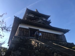 一乗谷城から丸岡城へ昼まえに到着。一筆啓上茶屋前の駐車場に車をとめて、まずは昼食を頂く。その前に一筆啓上茶屋の入り口にてスタンプ押印。状態はいいです。丸岡名物のおろしそばをおいしく頂いたあと、丸岡城へ登城。趣のある天守です。中の階段は今まで