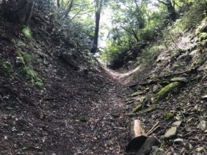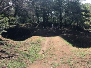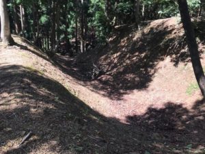 柳ヶ瀬トンネル脇の林道に入ると玄蕃尾城に直行できます。駐車場からいきなり登山が始まります。15分ぐらいで最初の曲輪に到着してからは、虎口、土塁、空堀、堀切、曲輪のオンパレードです。これだけの広さの遺構をきれいな状態で維持している方々に頭が下がります。また、感謝したいです。杉山城に負けず劣らずの山城でした。