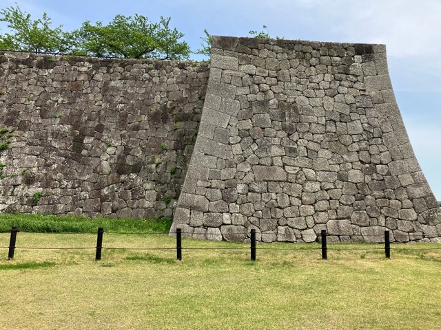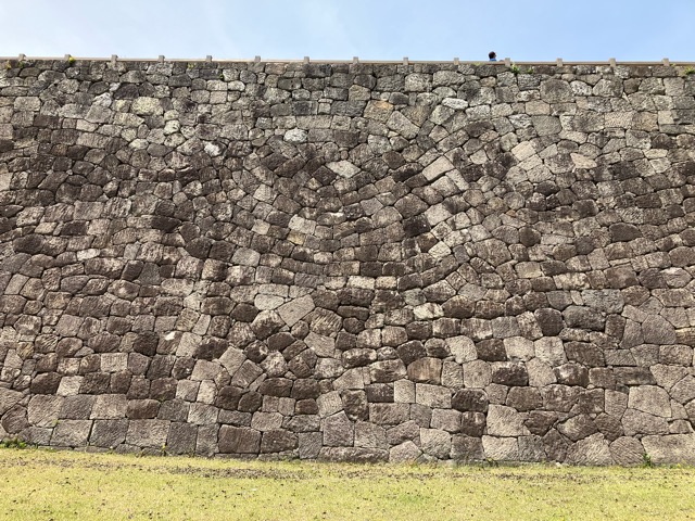 まず、高石垣の同心円型の石積みを見ることができます。