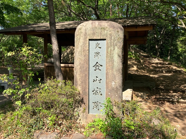 足利氏館から金山城へ移動。登山道の入り口を過ぎて、車で山頂付近まで行き、20台程度の駐車場に到着。外国の観光客もいました。物見台下虎口、月の池、大手虎口、日ノ池を通って、スタンプの設置してある休憩所に到着します。ガイドブックの三ノ丸から見た大手虎口の写真の左上の建物が休憩所です。スタンプの状態は良好。休憩所には、史跡金山城跡のパンフレットもあります。